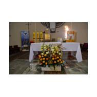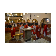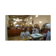W dniu 27 października obchodziliśmy również 80 rocznicę poświęcenia naszej świątyni. Uroczystość ta zbiegła się z zakończeniem Misji Świętych w naszej parafii. O godz. 15 w kościele odbył się koncert ELENI, na który przybyło bardzo dużo parafian i gości z ościennych parafii. Po zakończonym koncercie ks. proboszcz zaprosił wszystkich, na poczęstunek kawą i ciastem, które przygotowały nasze parafianki.