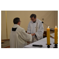 W dniu 24 sierpnia odbyła się Msza Św. którą po raz pierwszy w naszym kościele sprawował ks. Tadeusz Muc. Po rozpoczęciu Mszy Św. przy bardzo licznie zebranych wiernych przedstawiciele Rady Duszpasterskiej w imieniu wszystkich parafian przywitali księdza tymi słowami "Pan Bóg jest Panem czasu i losu człowieka. Z wielką radością witamy Cię jako Księdza Proboszcza w parafii pw. św. Józefa Robotnika w Osowcu-Węgrach i życzymy Ci błogosławieństwa Bożego, mocy Ducha Świętego, opieki Matki Najświętszej i św. Józefa, na każdy dzień posługi duszpasterskiej, a ze swej strony ofiarujemy pomoc i modlitwę". Na koniec Mszy Św. ksiądz przywitał wszystkich parafian oraz poinformował, że zaprzysiężenie na proboszcza odbędzie się 11 września o godz. 17.00