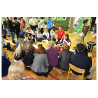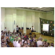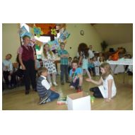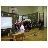 Po powrocie do szkoły na sali gimnastycznej odbyło się przedstawienie ekologiczne oraz pokaz mody ekologicznej, a następnie wręczenie dyplomów i nagród dla uczniów, którzy brali udział w konkursach: plastycznych, literackich i wiedzy.
