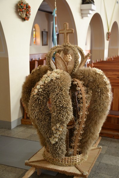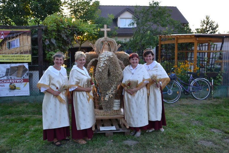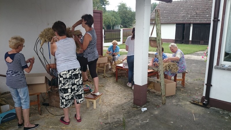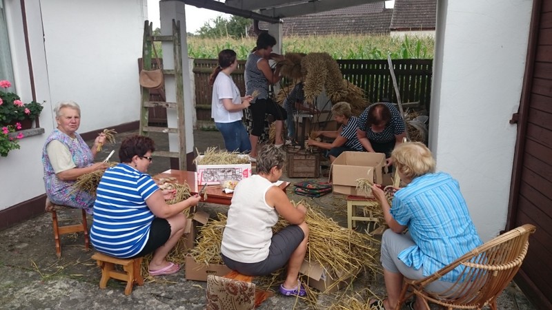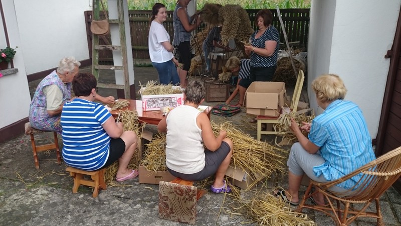 Rozpoczęły się już prace przy nowej Koronie Dożynkowej. Jak od wielu lat grupa pań poświęcając swój prywatny czas, urlop i wiele innych zajęć rozpoczęła prace przy wykonywaniu nowej korony. Prace prowadzone SA w godzinach porannych i wieczornych ok. 10 godzin dziennie. Nie jest to jednak początek, ponieważ wcześniej trwały prace przy wykonaniu konstrukcji oraz wiele dni przy zbieraniu zbóż do wykonania tej misternej pracy.