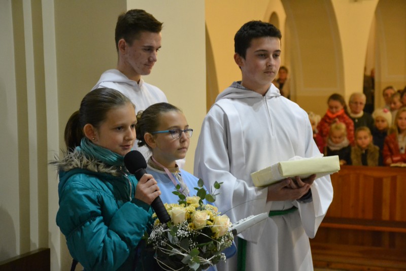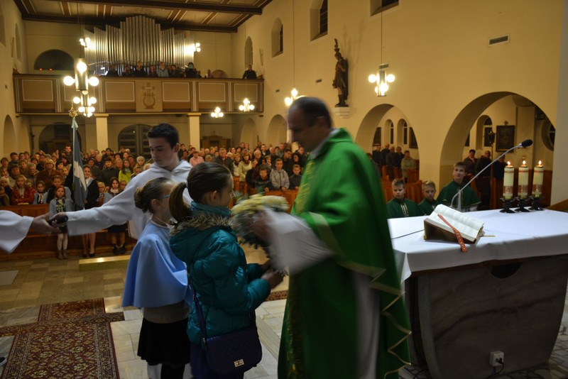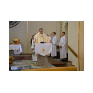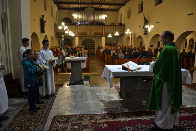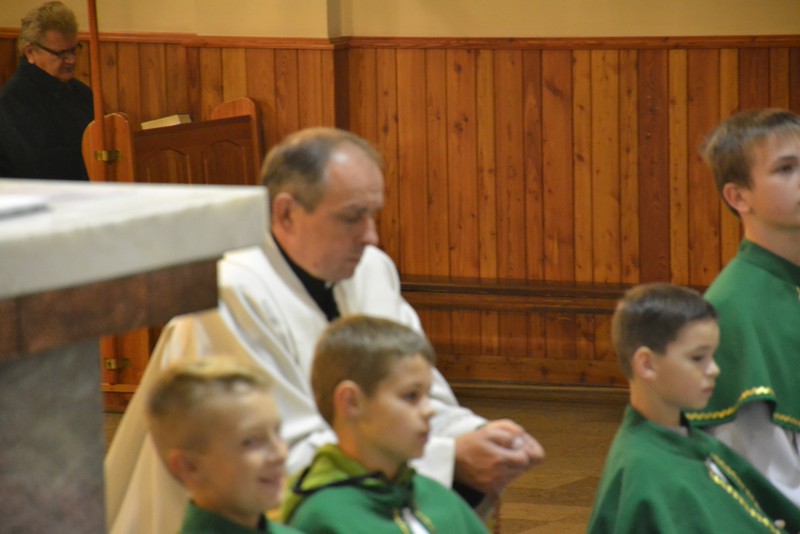 W dniu 19 października o godz. 18.30 odprawiona była Msza św. w podziękowaniu za lata poslugi w naszej parafii ks. Marcina Wilczka. Mszę celebrowal sam ks. Marcin. Przed błogoslawieństwem końcowym życzenia złożyły dzieci jako przedstawiciele poszczególnych miejscowości a przed zakrystią drobny upominek wręczyli jeszcze przedstawiciele Rady Duszpasterskiej. Dziękujemy ks. Marcinowi za 16 lat poslugi w naszej parafii i zawsze czekamy na jego odwiedziny.