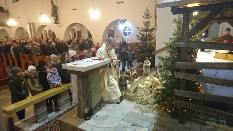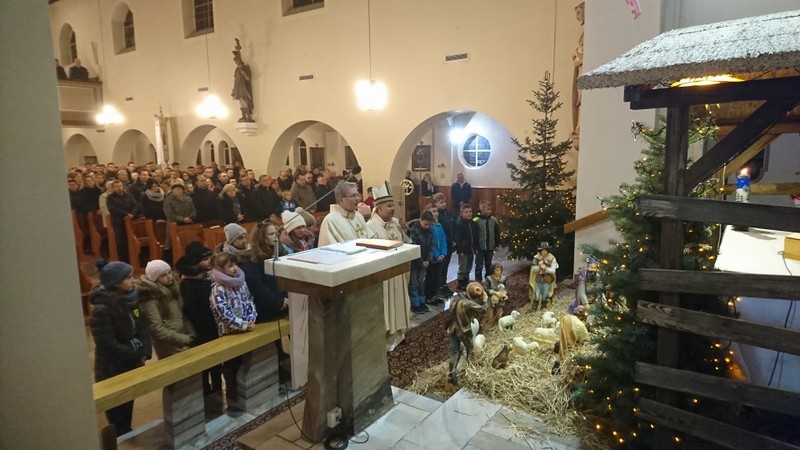 Po raz pierwszy w naszej parafii pasterkę celebrował biskup. O godz. 24.00 rozpoczęła się pasterka, którą celebrował ks. biskup Rudolf Pierskała wraz z księdzm proboszczem. Przed i w trakcie pasterki przygrywała parafialna młodzieżowa orkiestra dęta. Po zakończonej pasterce i błogosławieństwie biskupa ksiądz proboszcz w asyscie dzieci i biskupa złożył dzieciątko w żłóbku.