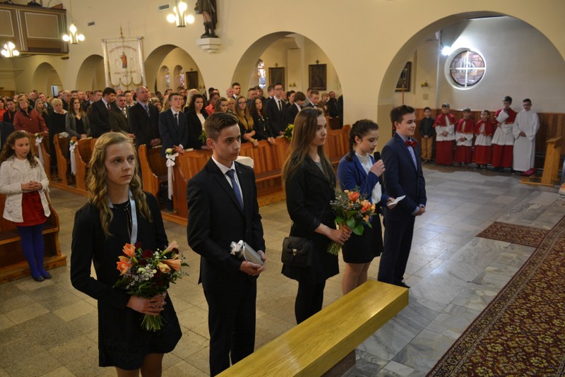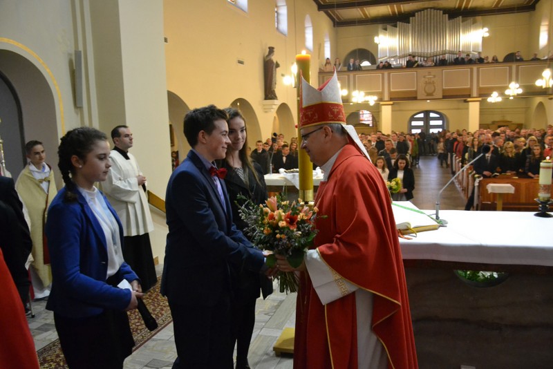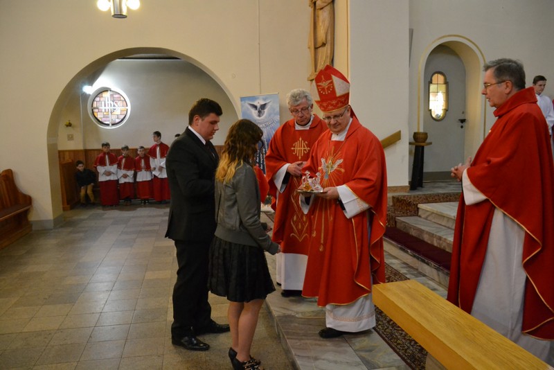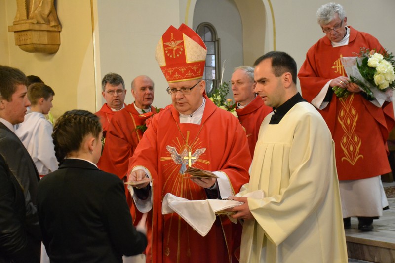 W dniu 25 kwietnia w naszej parafii sakrament bierzmowania z rąk biskupa ordynariusza Andrzeja Czai przyjęło 54 młodych chrzescijan, a mianowicie