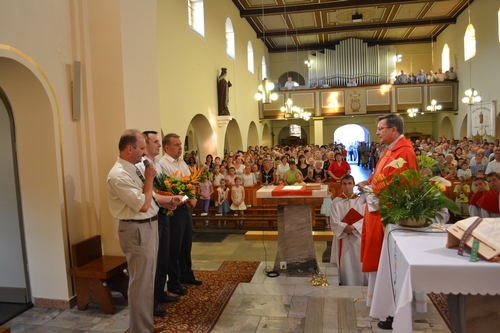 W dniu 21 sierpnia o godz. 10.30 odbyła się ostania Msza Św. niedzielna sprawowana w naszej świątyni przez księdza proboszcza Franciszka Lercha wraz z diakonem Artemiuszem Fronia oraz ks. Józefem Pikosem. W świątyni zgromadziło się bardzo wielu parafian, którzy swoją obecnością chcieli podziękować ks. proboszczowi za czas jaki spędził w tutejszej parafii oraz za wszystkie posługi tu sprawowane. Po zakończeniu Mszy Św. przedstawiciele poszczególnych miejscowości jak i oragnizacji działających na terenie parafii, Wójt gminy Turawa oraz z-ca Wójta gminy Łubniany złożyli księdzu życzenia oraz wręczyli upominki. Po życzeniach w kościele odbyła się owacja na stojąco przy oklaskach wszystkich wiernych i odśpiewano "Sto lat". Życzymy ks. Franciszkowi zasłużonego odpoczynku na emeryturze, zdrowia, szczęścia, błogosławieństwa Bożego i z naszej strony ofiarujemy modlitwę i pamięć w naszych sercach. DZIĘKUJEMY.