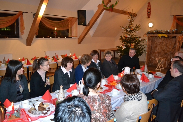 W dniu 21 grudnia w naszej parafii odbyło się dekanalne spotkanie nauczycieli, wychowawców, katechetów i pedagogów. O godz. 18.00 została odprawiona Msza Św. koncelebrowana w intencji nauczycieli, wychowawców, katechetów i pedagogów, którą sprawował ks. prof. Piotr Morciniec wraz z ks. Marcinem Wilczkiem oraz proboszczem ks. Tadeuszem Mucem. Słowo Boże wygłosił w kościele ks. Piotr Morciniec. Po Mszy Św. nauczyciele i wychowawcy udali się do sali OSP w Osowcu, gdzie przygotowane było spotkanie opłatkowe, na którym ksiądz profesor wygłosił wykład. Po wykładzie nastąpiła seria pytań a potem przybyły ks. dziekan Jerzy Tomeczek pobłogosławił opłatki i złożono sobie życzenia.