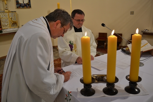 W dniu 11 września o godz. 17.00 odbyła się uroczystość wprowadzenia na urząd proboszcza prafii Osowiec-Węgry ks. Tadeusza Muca. Uroczystość miała miejsce w czasie uroczystych nieszporów. Ks. Dziekan i ks. nominat w procesji prowadzonej przez orkiestrę i młodzież przeszli z plebanii do kościoła. Po odśpiewaniu psalmów odbyła się formuła wprowadzenia. Najpierw ks. Dziekan odczytał dekret biskupa opolskiego Andrzeja Czaji. Następnie wygłosił homilię, a po niej ks. nominat złożył wyznanie wiary oraz przyżecznie na księgę Ewangelii. Po przyrzeczeniu i wyznaniu wiary podpisał na ołtarzu dokumenty i otrzymał z rąk Dziekana klucze do kościoła. Wtedy to po raz pierwszy jako urzędujący proboszcz odmówił modlitwę do patrona naszej parafii Św. Józefa Robotnika, po czym odśpiewano uroczyste Tedeum Laudamus i proboszcz udzielił błogosławieństwa sakramentalnego. Po błogosławieństwie dzieci i przedstawiciele poszczególnych miejscowości złożyli księdzu życzenia. Po nieszporach kapłani zgromadzeni na uroczystosci wraz z proboszczem procesyjnie udali się na probostwo.